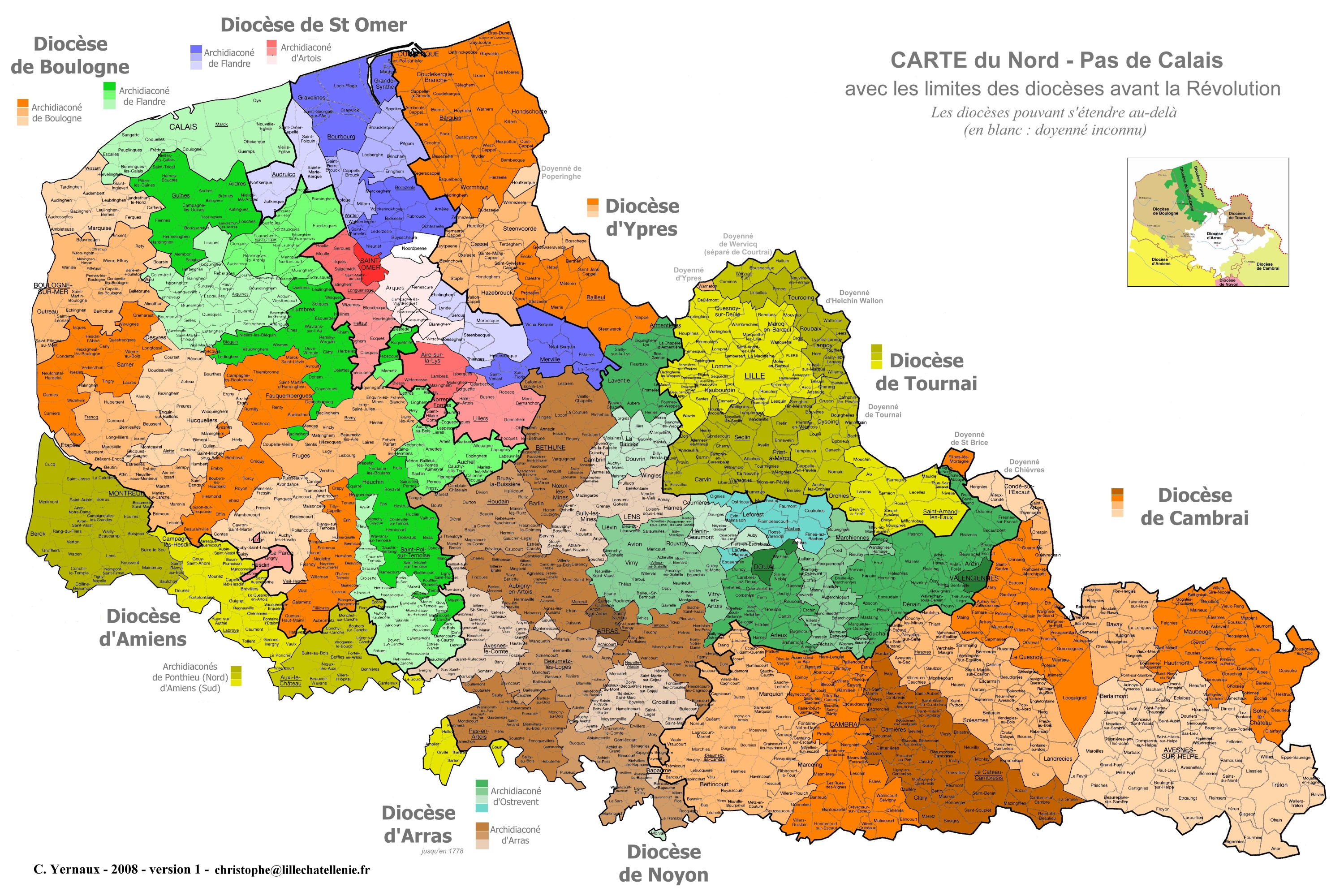 Carte des diocèses du Nord-Pas de Calais